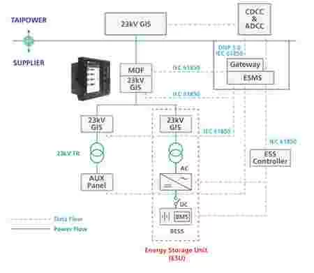 Battery Energy Storage Systems (BESS) are becoming an important component in the modern electric network. These systems are often combined on-site with renewable energy sources for storing energy during peak production or low demand, and releasing the stored energy during peak demand.Taiwan Power Company (Taipower) designed a BESS system, implemented at a distribution-substation level, in order to balance supply in local distribution networks. This is achieved by using the BESS to offset deviations in frequency, which also indicate surges or swells in the supply of energy. In this case, these BESS are stored in containers (fig.1), featuring between 1MW to 2MW capacity.