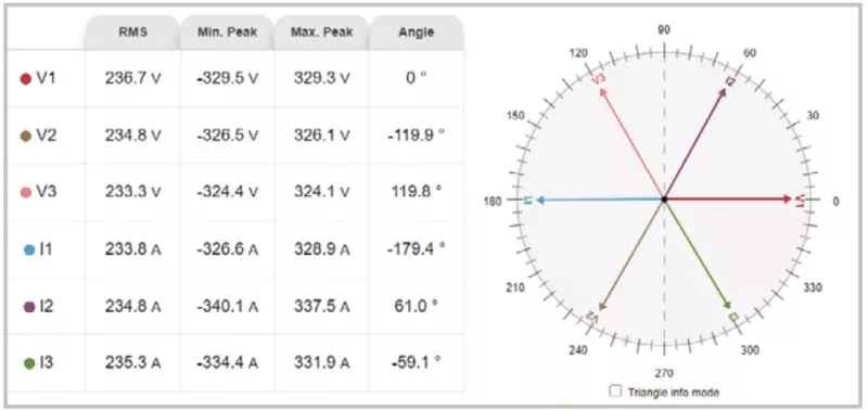 Providing this detection is not trivial and is not featured by most power analyzers on the market. The PM180 uses synchronous voltage and current waveforms, recorded before and during an event, to determine the location of the disturbance source. Depending on the characteristics of the fault, the device can apply different methods of analyzing the collected data to give the most reliable indication of the direction of the fault.